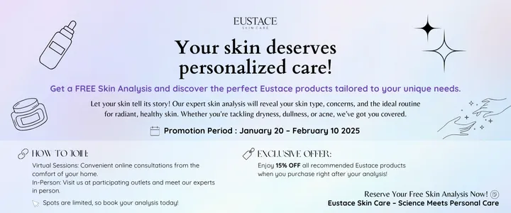 Enjoy 15% OFF all recommended Eustace products when you purchase right after your analysis!